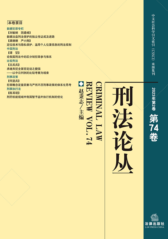 本卷特設(shè)“數(shù)據(jù)犯罪專(zhuān)欄”,收錄了4篇相關(guān)文章。劉敏嫻、陰建峰的“數(shù)據(jù)法益刑法保護(hù)的獨(dú)立性證成及進(jìn)路”一文提出,數(shù)據(jù)法益是獨(dú)立于計(jì)算機(jī)系統(tǒng)安全之外的抽象集體法益,具備與刑法價(jià)值同源性的法理基礎(chǔ),且有受到獨(dú)立侵害的可能性。張宜培的“數(shù)據(jù)犯罪刑法規(guī)制新模式及其立法構(gòu)建”一文認(rèn)為,在大數(shù)據(jù)時(shí)代背景下,現(xiàn)行刑法關(guān)于數(shù)據(jù)犯罪的規(guī)制應(yīng)從附屬型規(guī)制模式轉(zhuǎn)向獨(dú)立型規(guī)制模式。余昌安在“從吳某案談數(shù)據(jù)犯罪案件裁判說(shuō)理”一文中對(duì)吳某案的裁判說(shuō)理進(jìn)行學(xué)理審視與反思,并從方法論的角度論述如何進(jìn)行有效地釋法說(shuō)理。龔珊珊、嚴(yán)小翔的“定位技術(shù)與隱私保護(hù):濫用個(gè)人位置信息的刑法規(guī)制”一文提出,為了有效保護(hù)權(quán)利并平衡刑法的穩(wěn)定性和實(shí)用性,刑法需要根據(jù)權(quán)利類(lèi)型公平保護(hù)公民各個(gè)階段的個(gè)人信息,同時(shí)也需要確定侵犯公民個(gè)人信息罪所侵害的法益是個(gè)人隱私權(quán),具體規(guī)制方式需要遵循刑法的謙抑性原則。